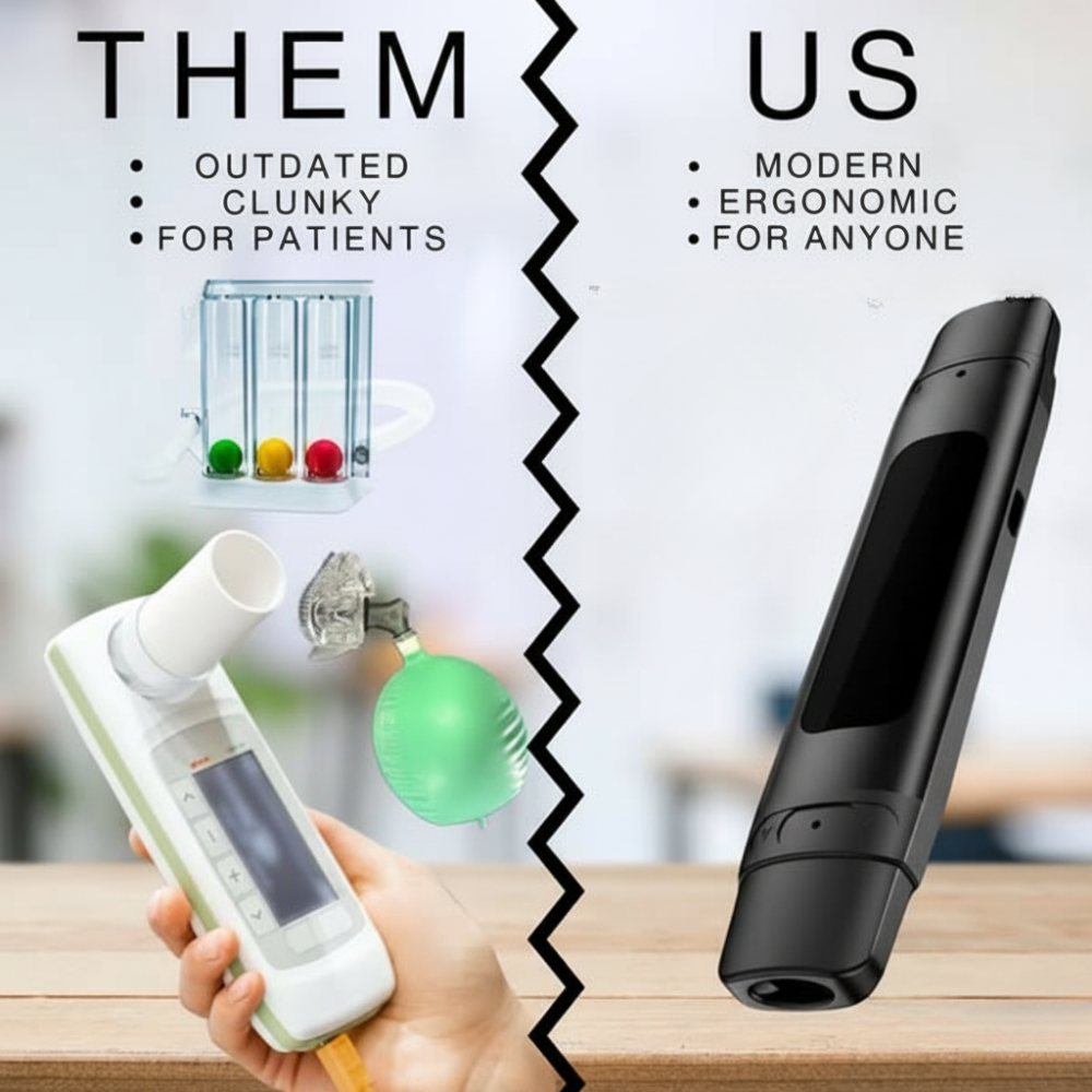 Old-style lung trainers were made for hospital patients clunky, clinical, and uncomfortable.